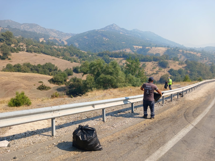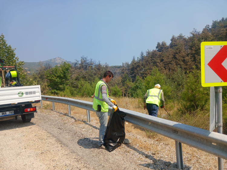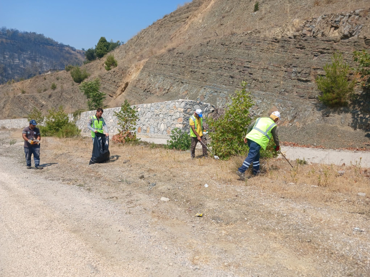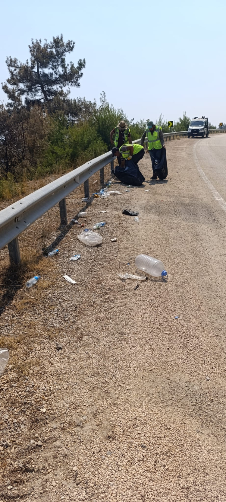 Alanda gezerek plastik, cam ve kağıt gibi atıkları tek tek toplayan ekipler, olası yeni yangınların önüne geçilmesini amaçlıyor.