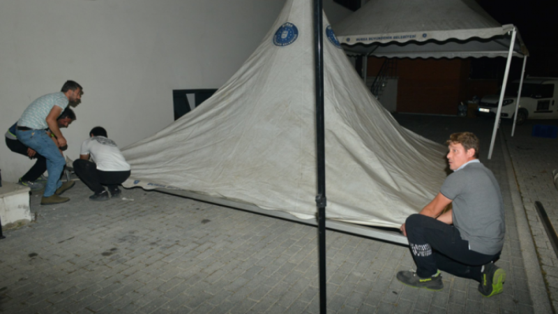 BURFAŞ ekipleri tarafından Vakıf Bera Kent Parkı içerisinde kurulan çadırlarda barınma ve gıda hizmeti verilmeye başladı.