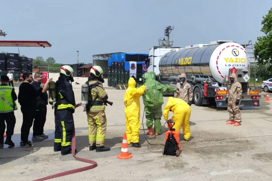 Nefes kesen tatbikatta, tehlikeli madde taşıyan ve gaz kaçağı olan bir tır jandarma eskortluğunda güvenli alana alınarak itfaiye ve AFAD ekiplerinin müdahalesi ile kontrollü olarak müdahale edildi.