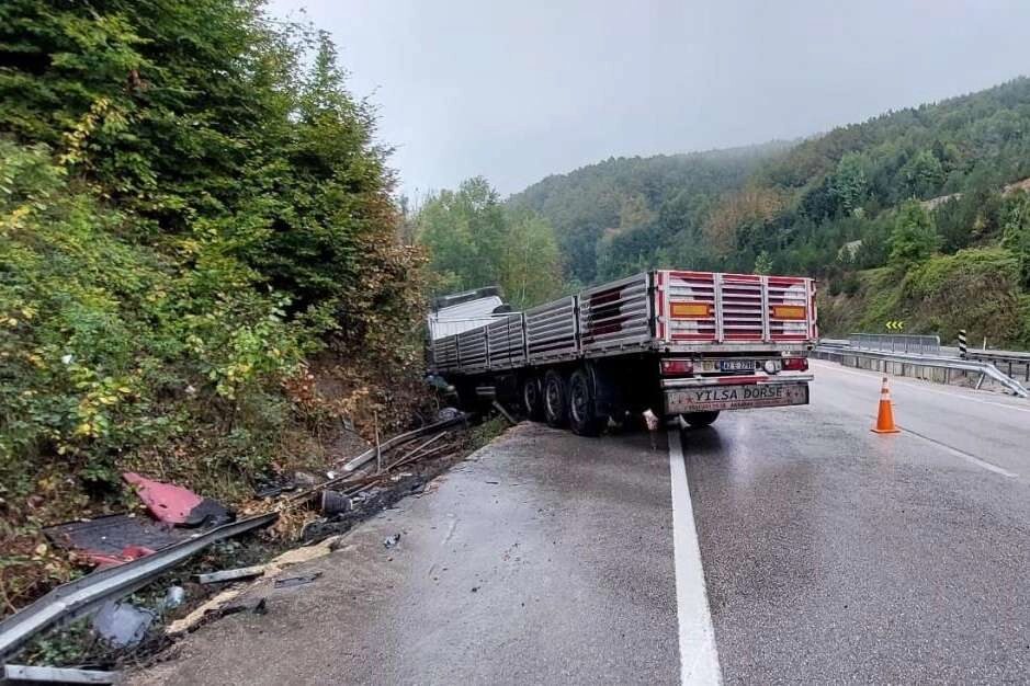 Edinilen bilgiye göre, kaza, Bursa-Ankara karayolu üzeri Mezit Boğazı'nda meydana geldi. İnegöl’den Bozüyük istikametine seyir halinde olan Soner Tekin(28) yönetimindeki 42 YK 614 plakalı tır, yağışla kayganlaşan yolda sürücüsünün kontrolünden çıktı. Bariyerleri yıkan tır, kayarak yamaca çarptı. Kaza sonucu sürücü yaralandı. Yaralı olay yerine sevk edilen ambulansla İnegöl Devlet Hastanesi'ne kaldırıldı.