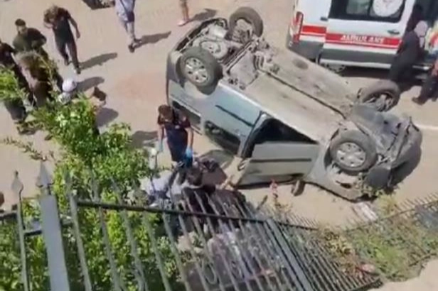 Araç içerisinde bulunan sürücü E.A., C.A. ve A.Y. (5) yaralanırken olay yerine polis, itfaiye ve sağlık ekipleri sevk edildi.