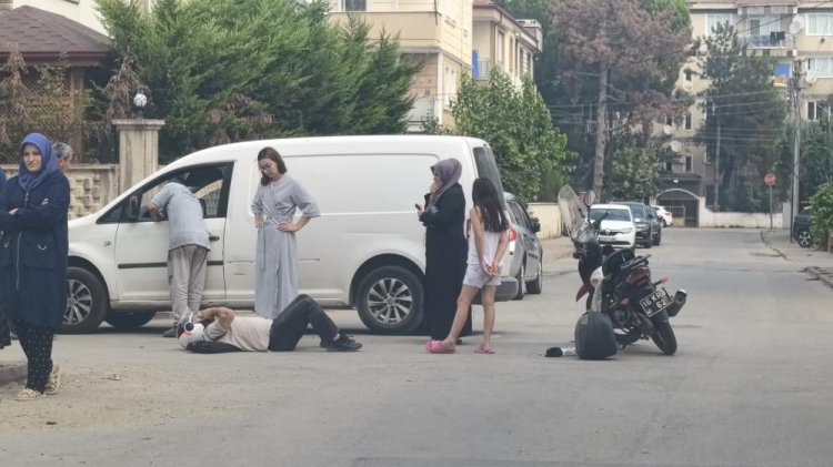 Çarpışmanın etkisiyle devrilen motosikletten düşen sürücü yaralandı.