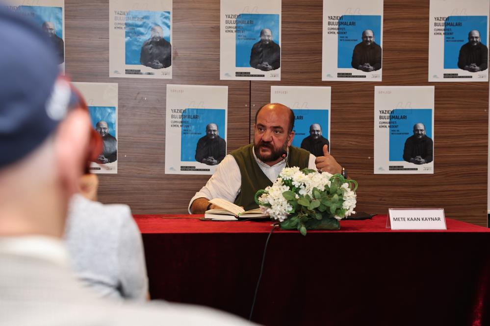 Nilüfer Belediyesi Yazıevi Buluşmaları'nda, sanatseverleri Türk edebiyatının ve düşün dünyasının önemli isimleriyle bir araya getirmeye devam ediyor. Nilüfer Belediyesi'nin Misi Yazıevi'nde ağırladığı; Türkiye'nin yakın siyasi tarihini ele alan çalışmalarıyla tanınan Prof. Dr. Mete Kaan Kaynar, Nâzım Hikmet Kültürevi Balaban Salonu'nda "Cumhuriyet: Kimin, Neden?" konulu bir söyleşi gerçekleştirdi.