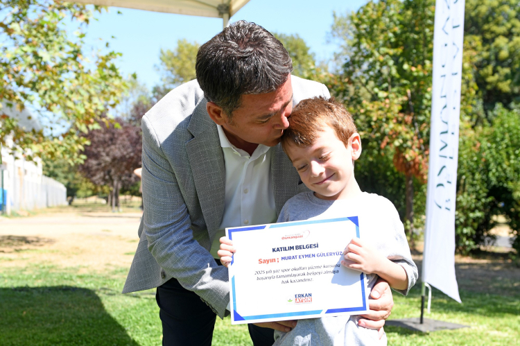 Eğitimlerini başarıyla tamamlayan minik yüzücüler, sertifikalarını Başkan Erkan Aydın'ın elinden almanın mutluluğunu yaşadı.
