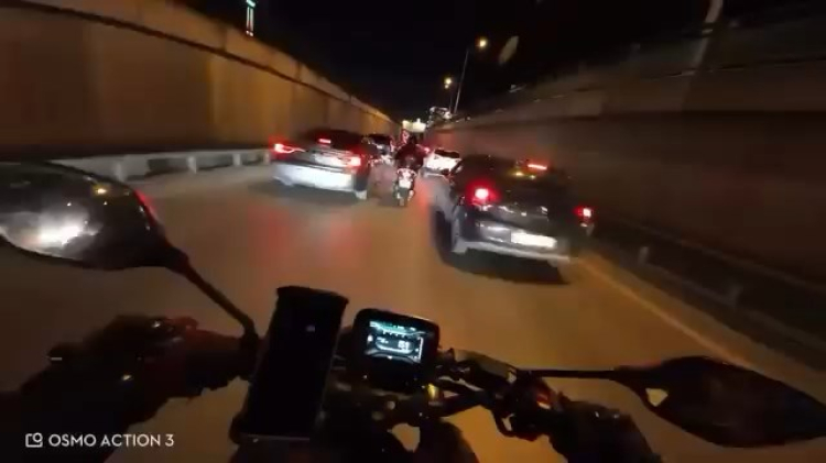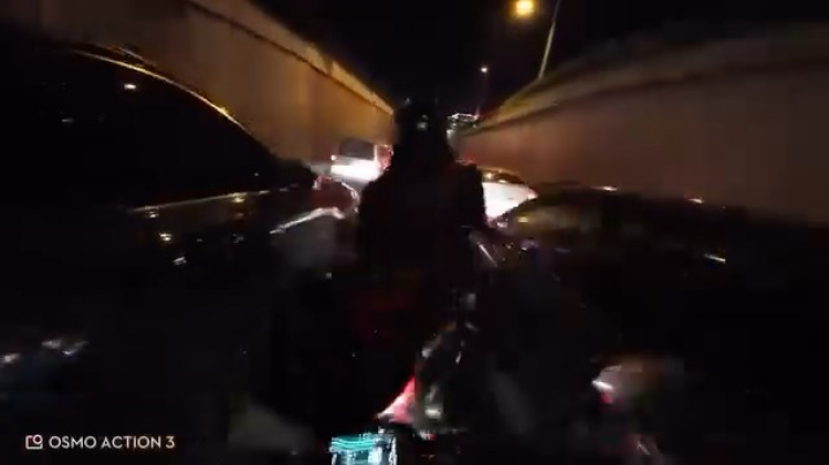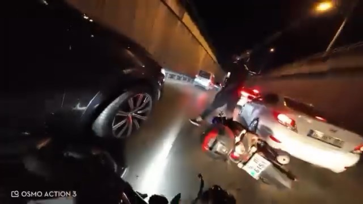 İki sürücü de yere düşerken, o anlar kask kamerasıyla görüntülendi.