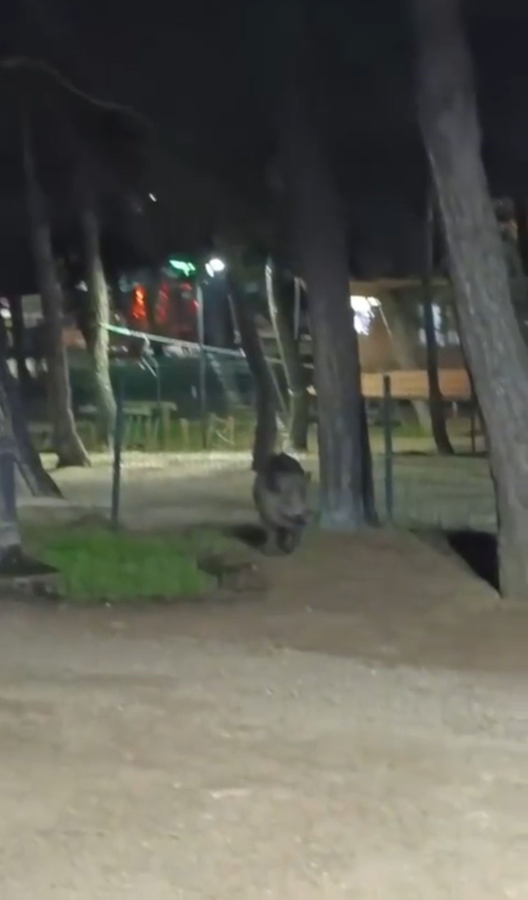Akşam saatlerinde acıkan yaban domuzu, mesire alanına girdi.