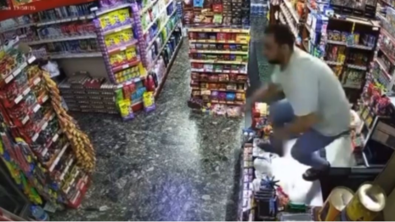 Sarsıntıyı fark eden çalışan kasa üzerinden atlayıp kaçtı.