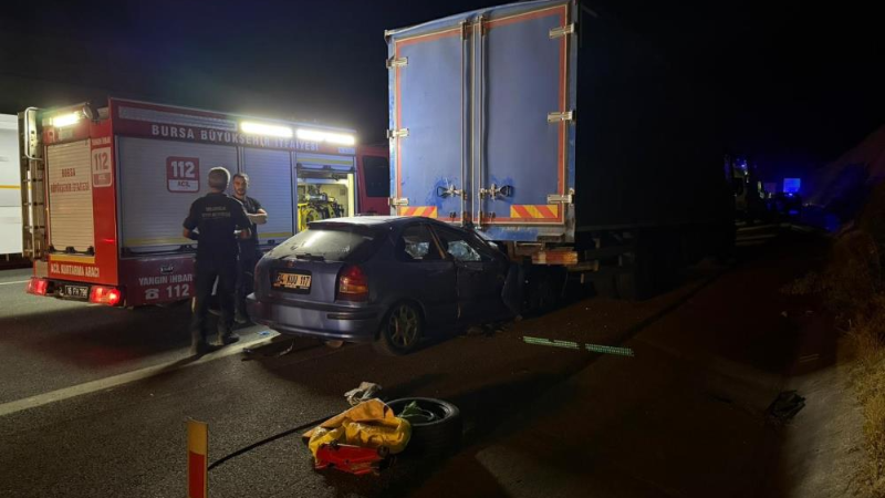 Kaza, Gemlik otobanında meydana geldi. Edinilen bilgiye göre, Kadir Kurt idaresindeki 34 KUU 117 plakalı otomobil, henüz bilinmeyen bir sebepten dolayı önünde seyreden İbrahim Y. idaresindeki 16 AOR 347 plakalı kamyona arkadan çarptı. Çarpışmanın etkisiyle otomobil kamyonun altına girdi. İhbar üzerine olay yerine sağlık, polis ve itfaiye ekibi sevk edildi. Olay yerine gelen polis ekipleri yolda güvenlik önlemi alırken, sağlık ekipleri ise sürücü Kadir Kurt'un olay yerinde hayatını kaybettiğini belirledi. Araçta yolcu konumunda bulunan Fatma K. ise ağır yaralanarak sıkıştı. Sıkışan talihsiz kadın, itfaiye ekiplerinin müdahalesiyle çıkarıldı. Fatma K., olay yerinde yapılan ilk müdahalesinin ardından Gemlik Devlet Hastanesi'ne kaldırıldı. Kamyon sürücüsü İbrahim Y., ifadesi alınmak üzere karakola götürüldü.
