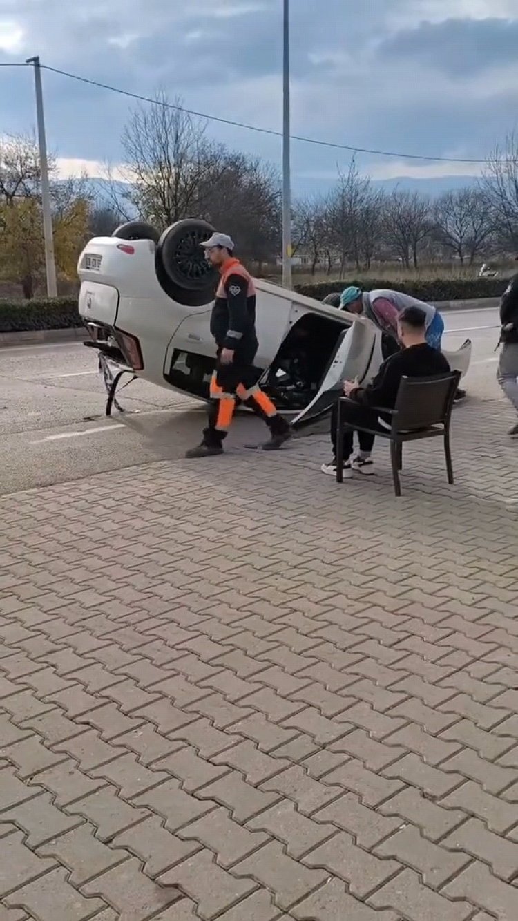 Kaza, saat 14.00 sıralarında İnegöl ilçesi Ahmet Türkel Çevre Yolu’nda meydana geldi. İsaören Kavşağı’ndan Hocaköy yönüne giden Muhammet U. (23) yönetimindeki 53 ACP 863 plakalı otomobil, sürücüsünün kontrolü kaybetmesi sonucu refüje çarpıp takla atarak ters döndü.