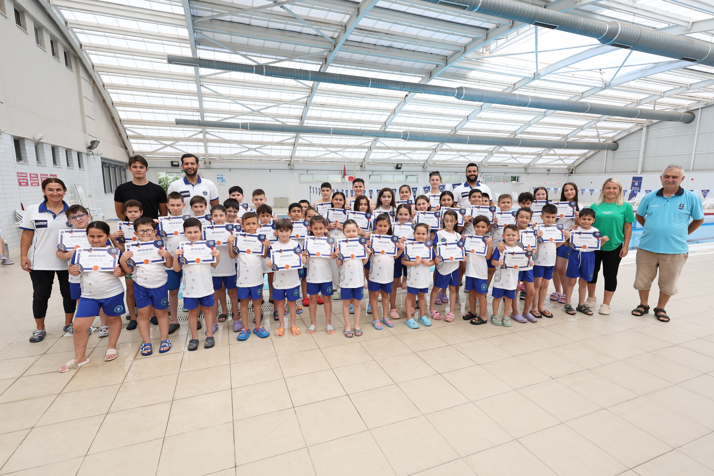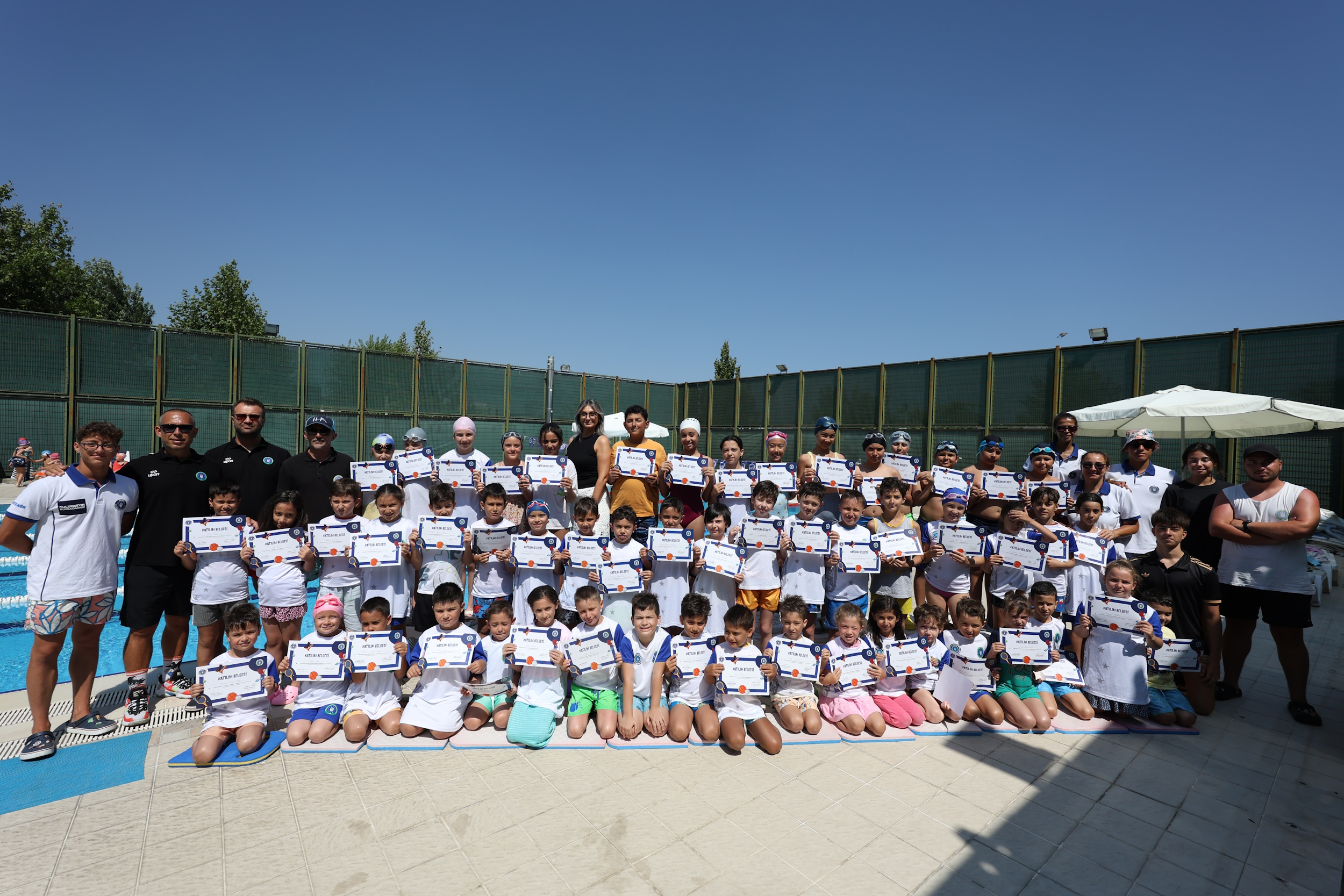 Bursa Büyükşehir Belediyesi Gençlik ve Spor Hizmetleri Dairesi Başkanlığı koordinasyonunda Büyükşehir Belediyespor iş birliğiyle 12 farklı branşta gerçekleştirilen Yaz Spor Okulları’nda eğitimler tüm hızıyla devam ediyor. Fethiye, Mihraplı, Kestel ve Gürsu Yüzme Havuzları’ndaki kurslara katılan 6-13 yaş aralığındaki çocuklar, 2 hafta boyunca haftanın 4 günü eğitim aldı. Bursa Büyükşehir Belediyesi’nin modern tesislerinde deneyimli antrenörler eşliğinde spor yapma imkanı bulan çocuklar, hem tatilin hem de havuzun tadını çıkardı. Eğlence dolu geçen ilk dönem sonunda minik yüzücüler, sertifika almanın mutluluğunu yaşadı.