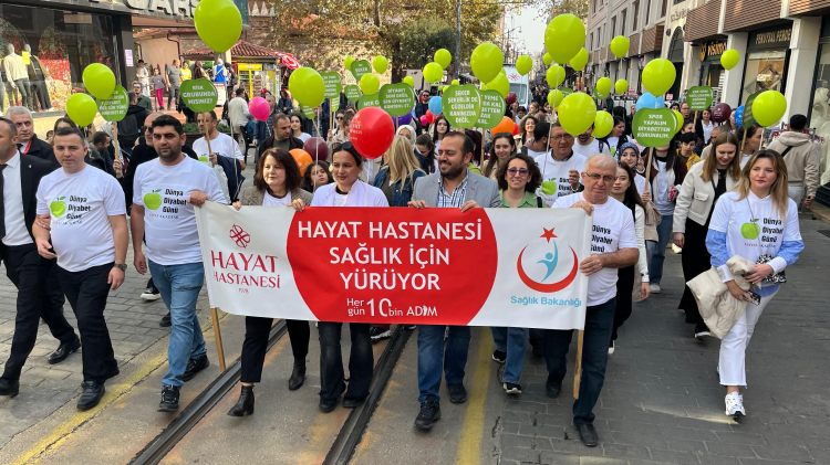Diyabetin Türkiye'de görülme sıklığı gittikçe artan, ciddi organ yetmezliğine yol açan ve hayat kalitesini olumsuz etkileyen bir hastalık olduğunu belirten Hayat Hastanesi Yönetim Kurulu Başkan Yardımcısı ve Başhekimi Uzm. Dr. Fatih Özkul, "Diyabete dikkat çekmek adına her yıl düzenlediğimiz bu yürüyüş, her geçen yıl kalabalıklaşıyor. Yaptığımız farkındalığın, farkına varıldığını görüyoruz. Diyabet halk arasında şeker hastalığı olarak bilinmektedir. Ancak adı tatlı, kendi acıdır. Önemsenmeyen ve ciddiyeti farkında olunmayan bir hastalıktır. Diyabete karşı, harekete geçmeliyiz. 10 bin adım atmalıyız. Sadece diyabete değil, kan şekeri, ruh hali ve kiloya da faydası da vardır. Tüm vatandaşların hareket geçmesini ve sağlığına özen göstermesini önemsiyoruz" dedi.