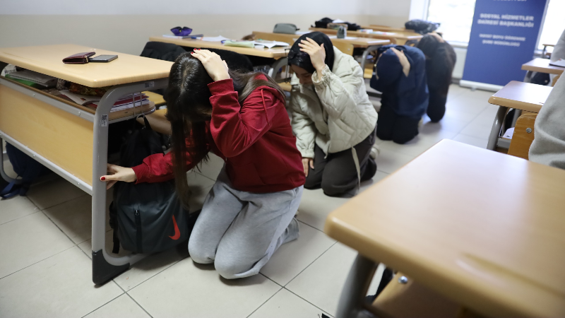 Bursa Büyükşehir Belediyesi Afet İşleri Dairesi Başkanlığı Afet Koordinasyon Şube Müdürlüğü koordinesinde Hürriyet YKS Hazırlık Merkezi'nde yapılan deprem tatbikatı gerçeği aratmadı. Alarm sesiyle birlikte ders sıralarının yanında çöp-kapan-tutun taktiğini uygulayan 600 öğrenci ve 45 öğretmen, daha sonra acil durum müdahale ekiplerinin yönlendirmesiyle binadan tahliye edildi. Bina dışında belirlenen alanda toplanan gençler, AKOM yetkilileri tarafından deprem ve tahliye tatbikatı hakkında bilgilendirildi.