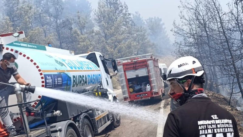Kentimizde meydana gelen orman yangınları hakkında bilgilendirme - Güncel durum (27 Temmuz 2025 Pazar, saat 15.00) Dün (26.07.2025) Orhaneli ilçemize bağlı Yakuplar Mahallesi ile Kestel ilçemize bağlı Ağlaşan Mahallesi’nde iki ayrı noktada çıkan; Orhaneli, Kestel, Gürsu ve Harmancık ilçelerimizde etkili olan ve bugün öğlen saatlerinden itibaren hava sıcaklığının artması ve bölgede rüzgarın şiddetlenmesiyle yeniden alevlenen orman yangınları ile mücadelemizi Büyükşehir Belediyemize bağlı 280’in üzerinde araç ve 570’in üzerinde personel ile hızlı ve koordineli şekilde sürdürüyoruz.