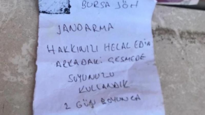 Edinilen bilgilere göre, Bursa ekipleri, geçtiğimiz günlerde köy çevresinde çıkan orman yangınlarına müdahale etmek üzere bölgede görev yaptı. Yangına müdahale sürecinde, ekiplerin ihtiyaç duydukları suyu, köydeki evin bahçesinde bulunan çeşmeden temin ettikleri öğrenildi. Görevlerini tamamladıktan sonra ise, suyu kullandıkları evin sahibine bir not bırakarak helallik istediler. Ekiplerin bu davranışı, hem ev sahiplerini hem de köy halkını derinden etkiledi. Aile, karşılaştıkları bu nazik not karşısında hem duygulandıklarını hem de gururlandıklarını belirtti. Köy sakinleri ise bu davranışı "Örnek bir hassasiyet" olarak nitelendirerek, "Devletin ekipleri böyle olmalı. Helal olsun. Allah hepsini korusun" şeklinde konuştu.