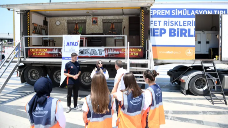Deprem bilinci ve deprem farkındalığı oluşturmak amacıyla Bursa’yı ilçe ilçe gezen Bursa İl Afet ve Acil Durum (AFAD) Müdürlüğü’nün deprem simülasyon TIR’ı, Osmangazi Belediyesi ev sahipliğinde vatandaşlarla buluştu.