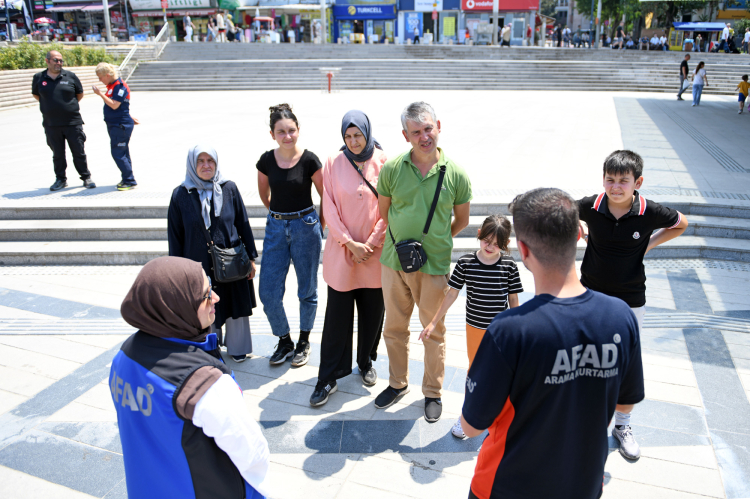 Osmangazi Meydanı’na kurulan simülasyon TIR’ında, AFAD eğitmenleri vatandaşlara deprem öncesi, sırasında ve sonrasında yapılması gerekenleri uygulamalı olarak anlattı. Eğitime katılanlar, 1999 Marmara Depremi’nde olduğu gibi 7,4 büyüklüğünde bir sarsıntıyı birebir deneyimleyerek “çök, kapan, tutun” hareketini uyguladı.