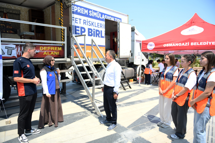 Eğitime başlamadan önce uzmanlar tarafından teorik bilgi verilen vatandaşlar, ardından özel olarak tasarlanmış simülasyon TIR’ında deprem anını deneyimledi. Eğitim boyunca katılımcılara masa, kanepe, sandalye gibi eşyaların yanında nasıl konumlanmaları gerektiği gösterildi. Deprem sonrası güvenli tahliye ve toplanma alanı bilgileri de paylaşıldı. Osmangazi Belediyesi Arama Kurtarma Ekibi (OSAD) de alanda görev alarak farkındalık çalışmalarına destek verdi.