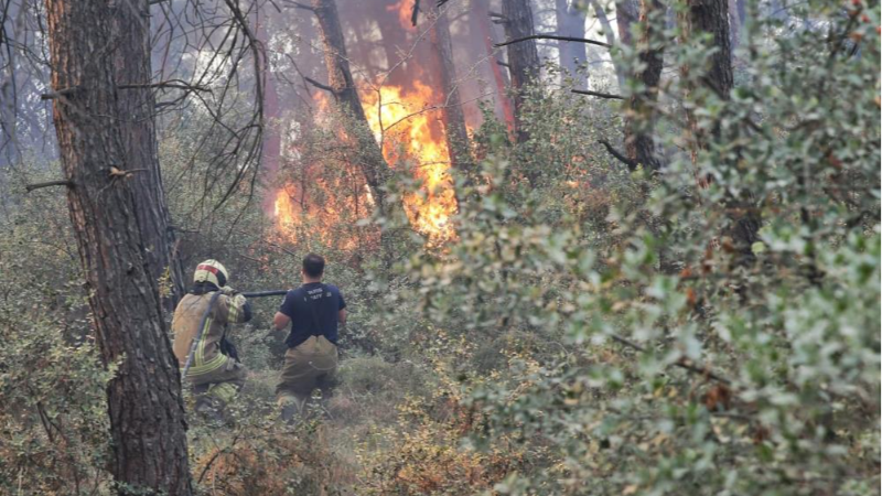 Yapılan açıklamada yangının kontrol altına alındığı, havadan ve karadan soğutma çalışmalarının devam ettiği aktarıldı.