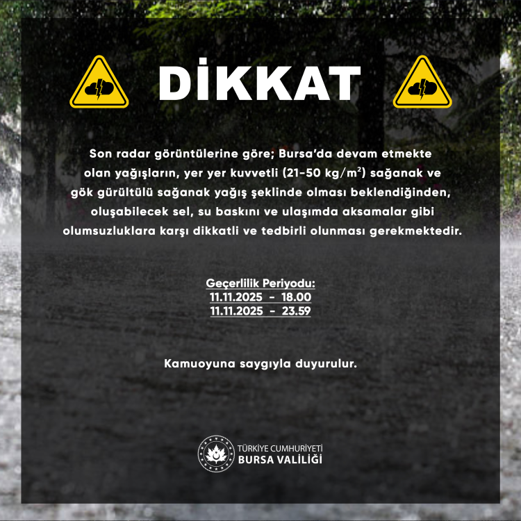 Yetkililer, özellikle dere yatakları, alçak kesimler ve trafiğin yoğun olduğu bölgelerde dikkatli olunması gerektiğini vurguladı. Bursa Valiliği, kamuoyunu gelişmeler konusunda bilgilendirmeye devam edeceklerini açıkladı.