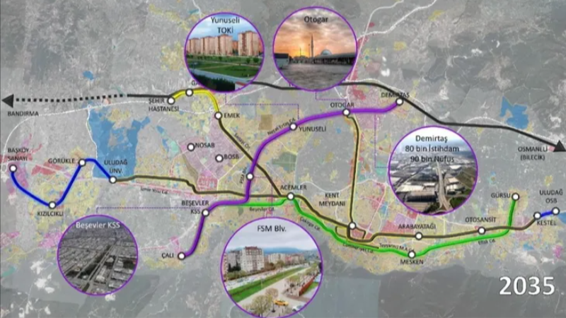 Bursa’da en çok kullanılan toplu taşıma araçlarından raylı sistemlerin gelişeceğini ve daha fazla güzergâha hizmet vereceğini müjdeleyen Bozbey, “Yaklaşık 10 kilometre uzunluğunda ve 9 istasyondan oluşması planlanan yeni hat, Paşaçiftliği ile Mimar Sinan–BTÜ istasyonlarında Bursaray’a entegre olacak. Bu sayede Ankara Yolu ile 11 Eylül Bulvarı arasında yaşayan yaklaşık 420 bin hemşehrimiz raylı sistem konforuna kavuşacak. Fizibilite çalışmalarına, Bursa Ulaşım Ana Planı ile uyumlu şekilde, 2025 yılı sonunda başlanacak. T1 ve T2 tramvay hatlarını da Osmangazi İstasyonu üzerinden Bursaray’a entegre ediyoruz. Böylece vatandaşlarımız Bursa Otobüs Terminali, Kestel, Uludağ Üniversitesi ve tarihi kent merkezi arasında çok daha kolay ve hızlı ulaşım sağlayabilecek. Uygulama projelerine ve imalatlara 2025 yılının ikinci yarısında başlanacak” dedi.
