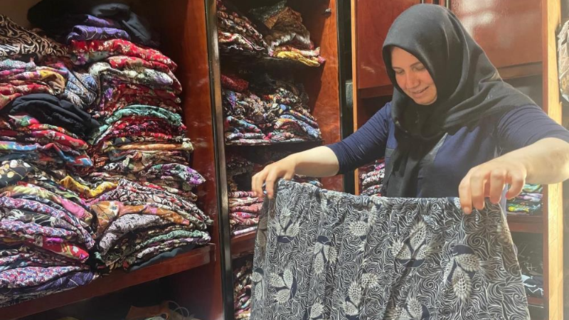"Biz de eşimle şalvar ve tülbentleri hazır alıp satıyorduk. Ancak satın alınanların 10-20 santimetre kısa olunca tüketicilerden olumsuz geri dönüşler aldık. Ben de 5-6 yıl önce kendim dikmeye karar verdim. Hazırlara göre biraz daha uzun yapıyorum çünkü bu kumaşlar biraz da çekme yapabliyor. Bu köyde kendi diktiğimi satyorum. Benim gibi kendi dikip satan sanırım yok. Kendim seçiyorum, kesiyorum, dikiyorum ve satıyorum. 250 lira bir şalvar. Çarşı gibi çok değil satışlar günden güne değişiyor."