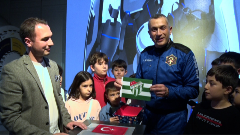 Uzay yolculuğunda yanında götürdüğü eşyalar arasında Süper Lig şampiyonluğu yaşayan Bursaspor bayrağını da götürdüğünü belirten Erdem, "Ben uzaya giderken bize bir paket, istediğimiz eşyaları götürme hakkı vermişlerdi. Ben de yanımda birçok bayrak götürdüm. Yaklaşık 3 buçuk kiloluk bir ağırlık şansımız vardı. Ben Türk bayrakları ve Türkiye'deki şampiyon olmuş kulüplerin bayraklarını götürdüm. Galatasaray, Fenerbahçe, Trabzonspor, Bursaspor, Beşiktaş, Başakşehir'in bayraklarını götürmüştüm. Bursaspor bayrağını, Türk bayrağını ve uçuş armamı buraya sergilenmek üzere hediye edeceğim. Aynı zamanda da buraya bir geri katkıda bulunmak istedim" dedi.