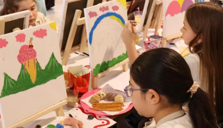 Bir sanat merkezinde, uzman sanat eğitmenleri eşliğinde düzenlenen etkinlikte çocuklar, tuval boyama, obje boyama ve ahşap boyama atölyelerine katılarak farklı teknikler ve materyallerle çalışma fırsatı yakaladı. Sanatı deneyimleyerek öğrenmenin keyfini yaşayan çocuklar, hayal dünyalarını özgürce ifade etti.