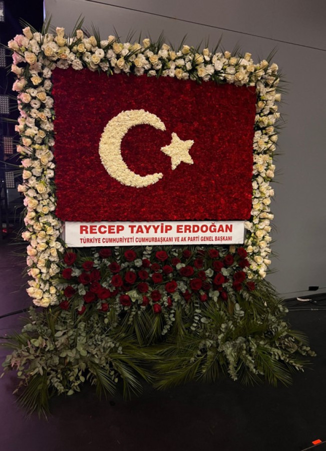 "Cumhurbaşkanımız Sayın Recep Tayyip Erdoğan, Milliyetçi Hareket Partisi'nin 57'nci kuruluş yıldönümü münasebetiyle, Liderimiz Sayın Devlet Bahçeli'ye Türk bayrağı motifinde hazırlanmış, 57. yıla ithafen 57 gülün yer aldığı tebrik çiçeği göndermiştir."