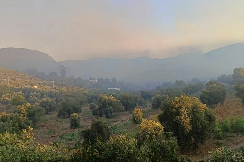 Bölgede şiddetli rüzgarın etkisi ile çevredeki zeytin bahçelerinde sıçrayan yangın kısa sürede geniş alana yayıldı. Orman yangınına müdahale sürerken dumanlar ilçe merkezinde de gözlemlendi.