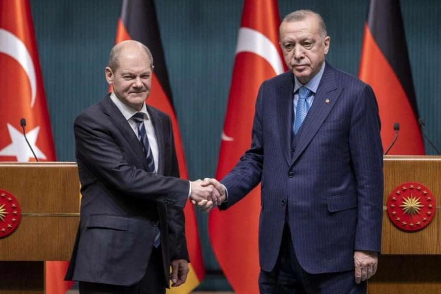 Şansölye Scholz'la üzerinde durduğumuz önemli konu başlıklarından biri de savunma sanayii alanındaki işbirliğimizdi. Savunma sanayii ürünlerinin tedariki bağlamında geçmişte yaşanan bazı sıkıntıları artık geride bırakarak işbirliğimizi geliştirmeyi arzu ediyoruz. Bu konuda değerli dostum Scholz'un gayretlerini takdirle karşıladığımızı bugün bir kez daha ifade etmek istiyorum.