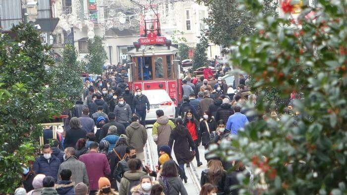 Korona virüse rağmen Taksim İstiklal Caddesi’ndeki vatandaşların kalabalığı pes dedirtti.