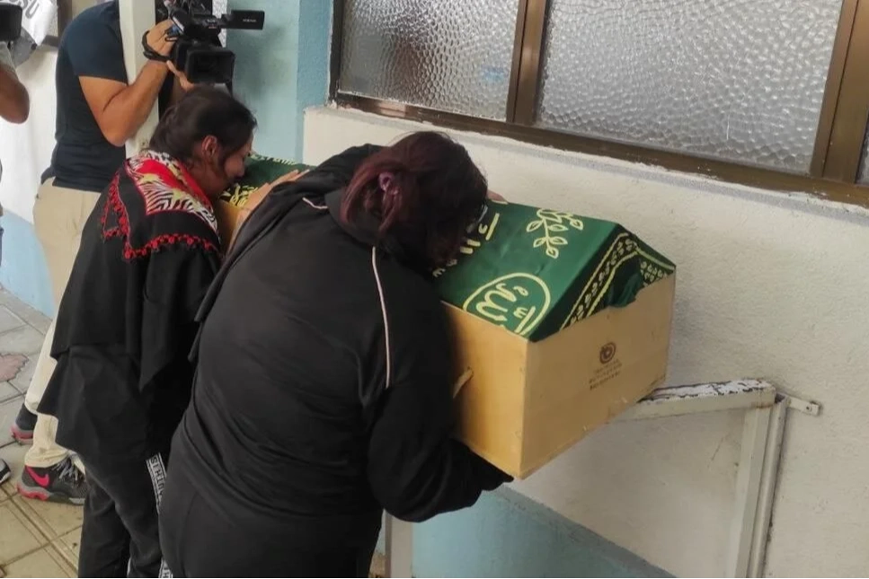 Cenaze teslim alınırken bebeğin 2 teyzesi gözyaşlarına boğuldu.