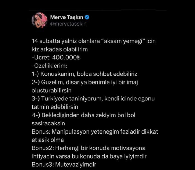 Sosyal medya fenomeni Merve Taşkın, 14 Şubat Sevgililer Günü için sosyal medya hesabından yaptığı paylaşım nedeniyle gözaltına alındı.
