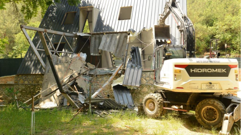Zabıta ekiplerinin güvenlik önlemleri eşliğinde gerçekleştirilen yıkım çalışmasında, bin 900 metrekarelik arazi üzerine kurulu toplam 270 metrekarelik iki kaçak villa ile birlikte alandaki müştemilat da kullanılamaz hale getirildi.