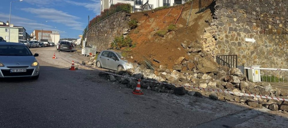 Bursa’nın Mudanya ilçesi Halitpaşa Mahallesi’nde saat 01.00 sıralarında, yağışın etkisiyle istinat duvarı çöktü. Yumurta Tepe Caddesi’nde bulunan Şan Sitesi’ne ait metrelerce yüksekliğindeki duvarın yıkılmasıyla park halindeki bir araç duvarın altında kalarak kullanılamaz hale geldi.