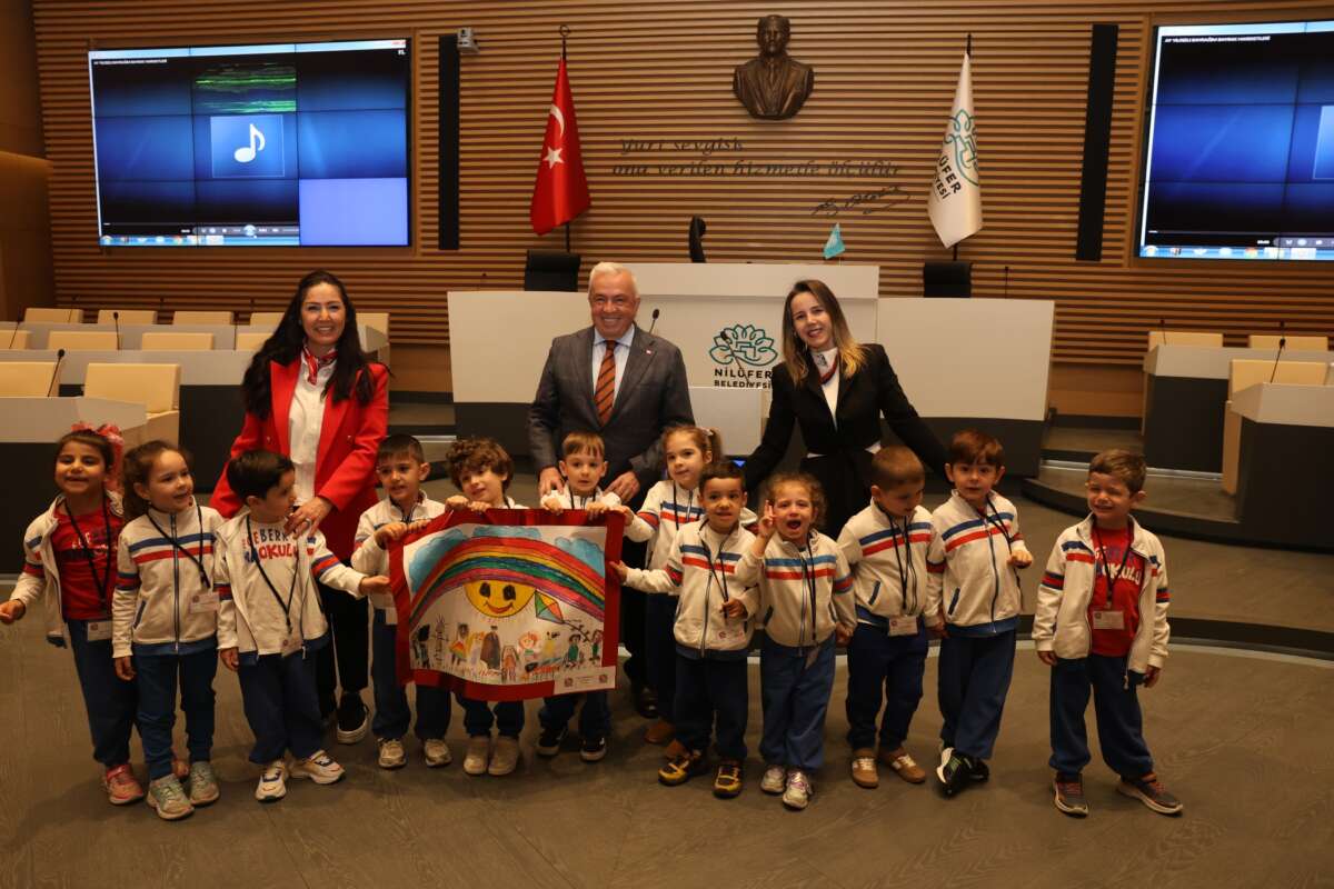 Nilüfer Barış Meclisi’nin konuğu, 23 Nisan Ulusal Egemenlik ve Çocuk Bayramı dolayısıyla çocuklar oldu. Nilüfer Belediye Başkanı Şadi Özdemir, Reaksiyon Akademi, Renkli Koza Anaokulu, Özel Ege Berk Anaokulu öğrencileri ile buluştu. 5-6 yaş grubundaki öğrenciler, hazırladıkları gösterileri sergiledi ve şiirleri okudu.