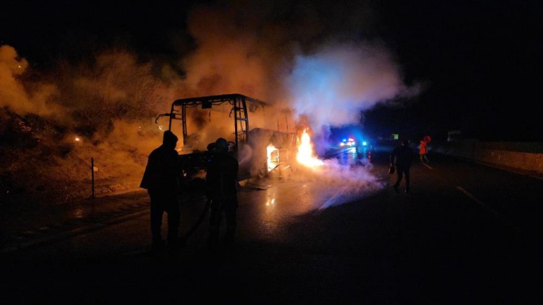 Otobüs haraket halindeyken yandı, faciadan dönüldü