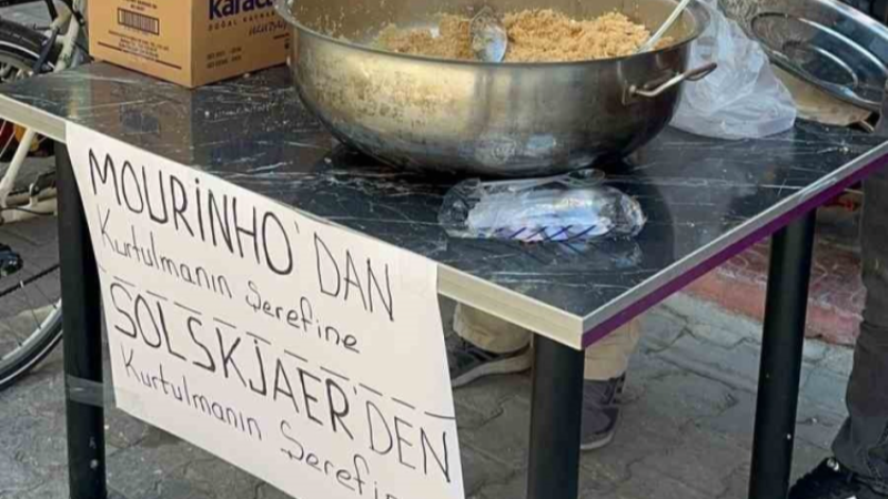 Ole Gunnar Solskjr ve José Mourinho için helva yapıp dağıtan esnafa, vatandaşlar da büyük destek verdi.