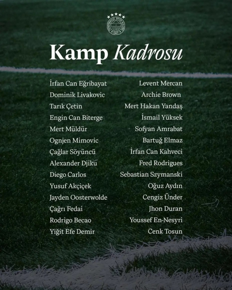 Sarı lacivertli takımın hocası Jose Mourinho, gelecek sezonun kadro planlamasında yer vermeyi düşünmediği Emre Mor, Lincoln Henrique, Miha Zajc'ın yanı sıra, yeni transfer Abdou Aziz Fall ve sakatlığı bulunan Anderson Talisca'yı da kafileye dahil etmedi.