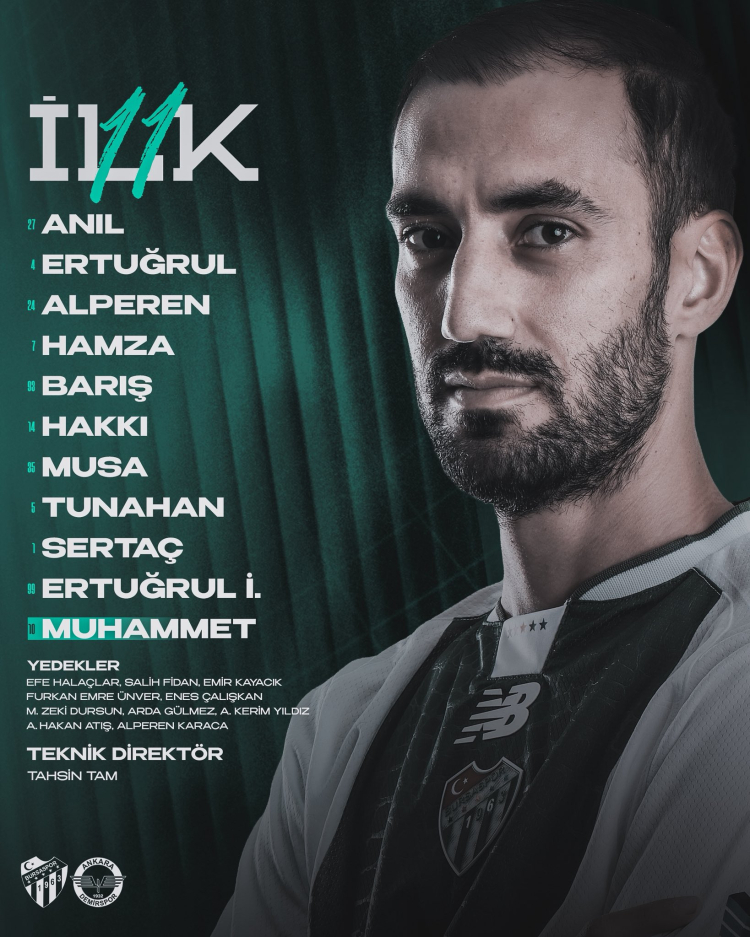 Nesine 2. Lig’in 15’inci haftasında oynanacak olan Bursaspor-Ankara Demirspor maçının 11’i netleşti.
