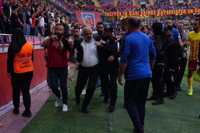 Kayserispor Başkanı Ali Çamlı, saha kenarına inerek yoğun bir tepki gösterdi. Sahaya girmek isteyen Ali Çamlı’ya kulüp yöneticileri güçlükle engel oldular.