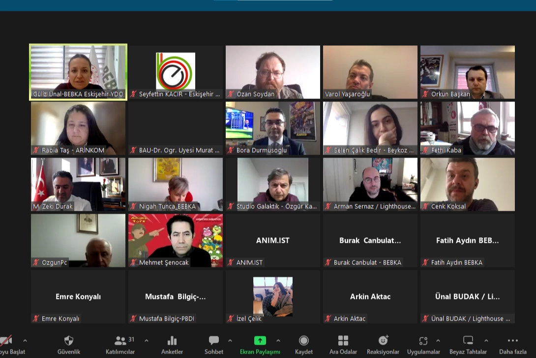 BEBKA tarafından organize edilen çevrimiçi toplantıya; BEBKA Genel Sekreteri Doç. Dr. M. Zeki Durak, TRT Çocuk Kanal Koordinatörü Bora Durmuşoğlu, Anadolu Üniversitesi Animasyon Bölüm Başkanı Prof. Fethi Kaba, KOSGEB Eskişehir İl Müdürü Tarık Yılmaz, Teknoloji Transfer Ofisleri ARİNKOM ve ETTOM temsilcileri, yerli animasyon yapımcıları ve çeşitli üniversitelerin ilgili bölümlerinden akademisyenler de katıldı. Oyun ve Animasyon Merkezi çalışmalarının devam ettiğini belirten Durak, “2015 yılından bugüne sektöre yönelik festival, yarışma, toplantı ve çalıştaylar gerçekleştirdik. Mali destek ve teknik destek programlarımızla kurumlarımıza proje desteği sağladık. Son olarak Sanayi ve Teknoloji Bakanlığı Üreten Şehirler Programı kapsamında; Anadolu Üniversitesi tarafından yürütülen Oyun ve Animasyon Geliştirme Merkezine 2.5 milyon TL desteğimiz oldu. Ön kuluçka hizmeti verecek merkezin kurulmasına duyulan ihtiyacı fark etmemizde bugüne kadar yaptığımız araştırma, analiz ve çalışmalar ile sizlerle gerçekleştirdiğimiz bu toplantılardaki görüş ve önerileriniz önemli katkı sağladı. Bu merkez, sektöre büyük katkılar sağlayacaktır” diye konuştu.