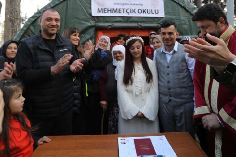 19 Mart'ta düğün yapmayı planlayan ancak Kahramanmaraş'ta meydana gelen depremler nedeniyle evlerinin hasar alması sonucu kurulan çadır kente yerleşen Ayşe Okur, nişanlısı Nevzat Ortak'ın teklifi ile insanlara umut olsun diye nikah tarihlerini öne çekti. Kararlarını nikah dairesine bildiren Ayşe ve Nevzat çifti için merasim düzenlendi. Çadır kentte Mehmetçik okulu çadırı önünde düzenlenen nikah törenine bölgede bulunan koordinatör valilerden Sakarya Valisi Çetin Oktay Kaldırım ile sahada bulunan gönüllüler de sürpriz yaparak şahit oldu.